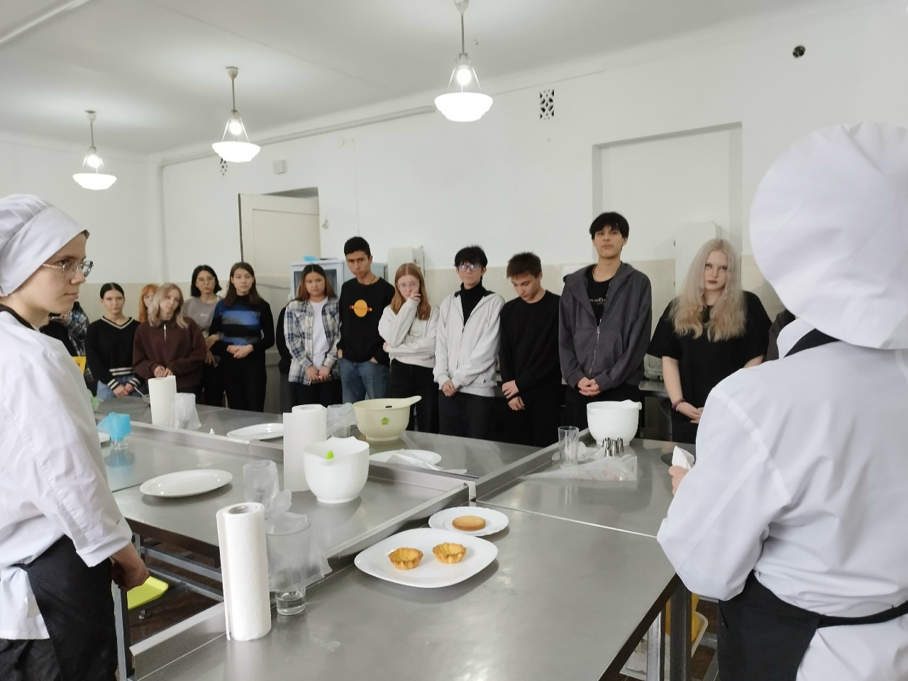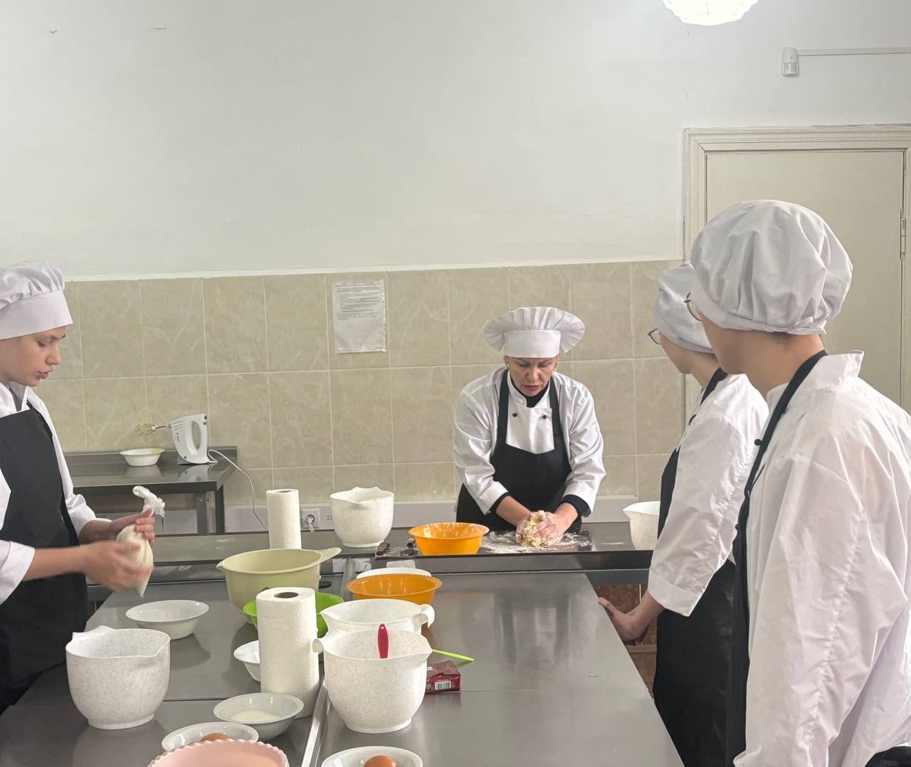 25 ноября студенты 2 курса группы №4 вместе с мастером п/о Андреевой Н. С. приготовили песочные пирожные с начинкой из смородинового конфитюра и белкового крема ко Дню матери. Студенты 1 курса группы №2 ознакомились с процессом приготовления пирожных. Песочное тесто, благодаря своей текстуре и вкус